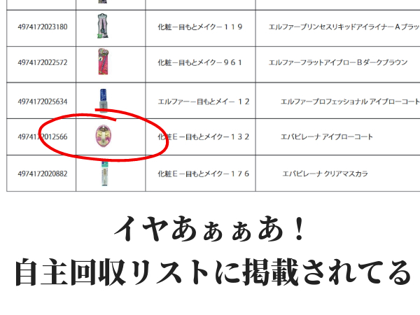 経緯をまとめると、ダイソーの名品「エバビレーナ アイブローコート」は2018年に自主回収→2020年に再販→2023年現在は販売中止になった模様。
